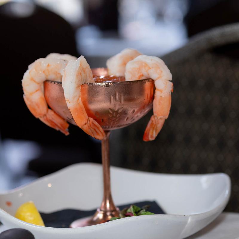 5 jumbo shrimp served with cocktail sauce & lemon wedge.